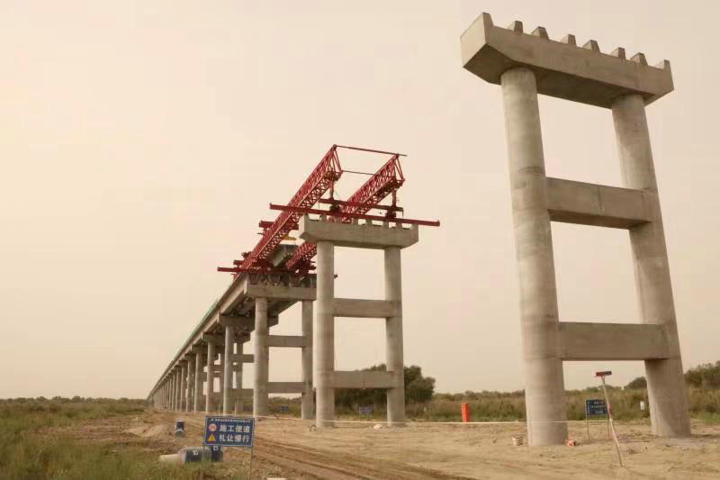 葉爾羌河特大橋全長2888米,最大墩高21米,共96跨,采用384榀箱梁結(jié)構(gòu),橫跨第三師圖木舒克國家級胡楊林公園和葉爾羌河,環(huán)水保要求高 、施工難度大,是圖昆公路關(guān)鍵節(jié)點工程。為加快施工進度和確保安全質(zhì)量受控,項目部成立施工協(xié)調(diào)小組,討論制定完善的施工方案及施工計劃,在順利完成橋梁樁基施工的基礎(chǔ)上積極為后續(xù)作業(yè)創(chuàng)造條件,實現(xiàn)了墩柱施工、箱梁預制施工齊頭并進的良好局面。