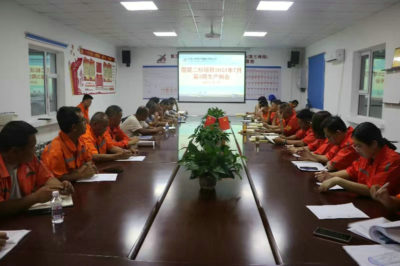 圖木舒克訊(通訊員 曾雷)7月21日,圖昆公路二標(biāo)項(xiàng)目部召開(kāi)施工生產(chǎn)例會(huì),項(xiàng)目部領(lǐng)導(dǎo)、各部門負(fù)責(zé)人、施工班組長(zhǎng)共42名人員參加了會(huì)議,會(huì)議由項(xiàng)目經(jīng)理董軍主持。