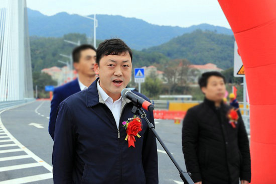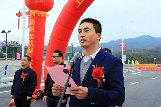 圖四、上杭縣委常委、組織部長(zhǎng)、汀江大橋及接線工程領(lǐng)導(dǎo)小組組長(zhǎng)徐峰宣布通車。