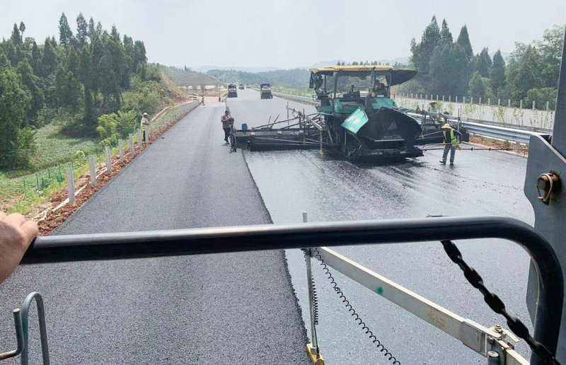潼榮高速瀝青面層攤鋪進行時