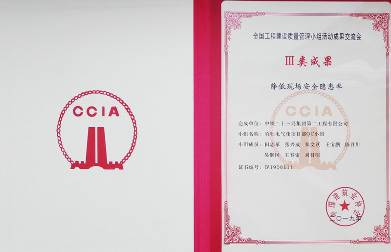 7月12日,從中國建筑業(yè)協(xié)會主辦的2019年全國工程建設質(zhì)量管理小組活動成果交流會傳來消息,中鐵二十三局集團二公司承建的哈牡電氣化鐵路改造項目,濱綏線K9果園街公鐵立交橋工程QC小組,《降低現(xiàn)場安全隱患率》研究成果獲得三類成果獎。