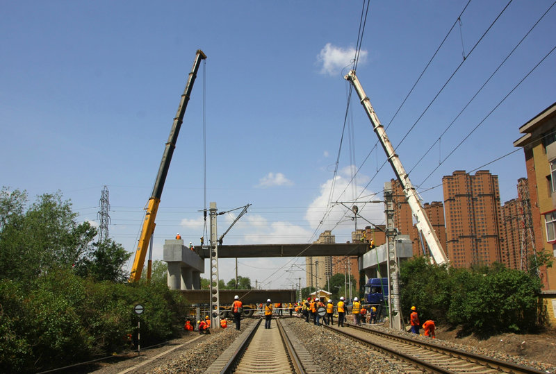 該研究成果,源于哈爾濱市香坊區(qū)境內(nèi)的哈牡電氣化鐵路改造項目,濱綏鐵路K9果園街公鐵立交橋工程。該橋全長1001.8米,其中第12孔跨越既有濱綏鐵路和香東電氣化鐵路。行車密度大、施工場地狹小、地下光電纜縱橫交錯、安全風險居高不下,直接影響鐵路行車安全,備受關(guān)注。