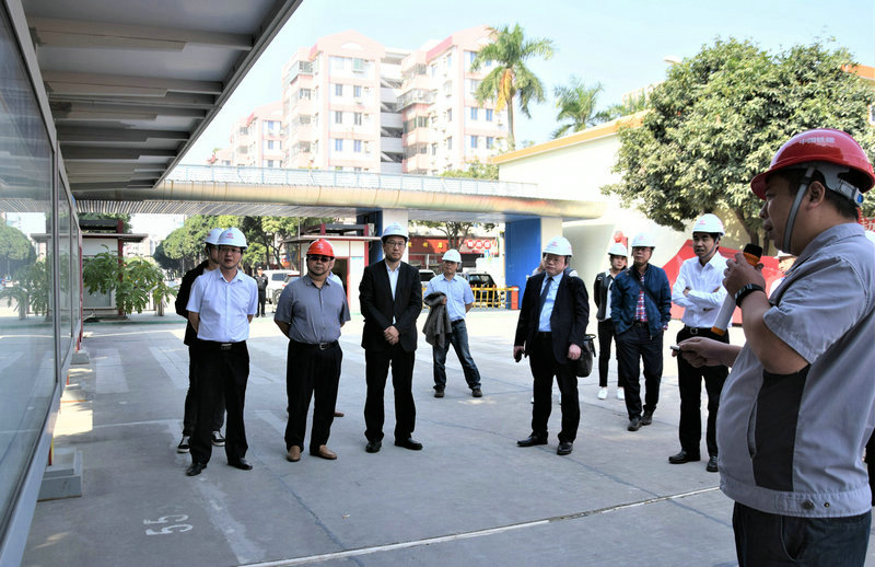 10日上午,調研組一行在中鐵建華南公司領導的陪同下,首先到地鐵18/22號線番禺廣場站施工工地進行了現場調研,聽取了工區(qū)管理人員對番禺廣場站的施工建設情況和“雙融合雙轉化”黨建實踐基地等情況匯報,查看了車站深基坑開挖,對項目的安全質量、施工管理和黨建融合發(fā)展等各項工作給與了較高評價。
