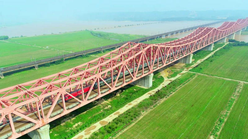 鄭州黃河兩岸郁郁蔥蔥 極目而望,橙紅色的京廣鐵路黃河大橋橫跨南北 在炎黃二帝像的注目下 守護(hù)著一列列火車(chē)安全通過(guò)