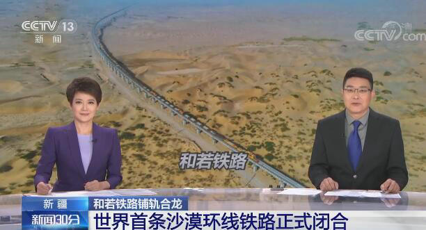 9月27日上午,在新疆和若鐵路施工現(xiàn)場(chǎng),隨著最后一對(duì)長(zhǎng)鋼軌到達(dá)接軌點(diǎn)、精準(zhǔn)落位,標(biāo)志著由鐵一院設(shè)計(jì),中鐵十一局和中鐵十四局承擔(dān)全線鋪軌任務(wù)的新疆和(田)若(羌)鐵路鋪軌完成,世界首條環(huán)沙漠鐵路正式閉環(huán)。