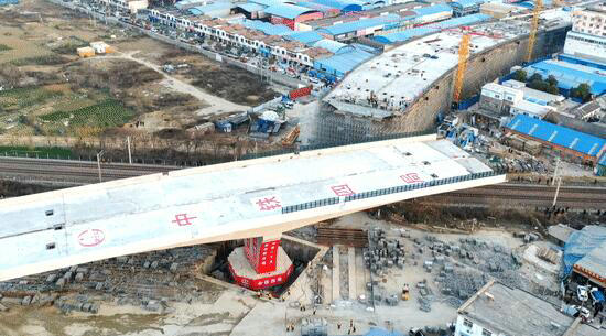12月22日18時(shí),重1.2萬噸、長(zhǎng)120米的T構(gòu)箱式轉(zhuǎn)體梁逆時(shí)針旋轉(zhuǎn)68°,圓滿完成轉(zhuǎn)體就位,標(biāo)志著鄭州鐵路建設(shè)管理有限公司代建的南陽(yáng)市中心城區(qū)至鴨河工區(qū)快速通道(以下簡(jiǎn)稱“鴨河快速通道”)控制性工程取得突破性進(jìn)展。