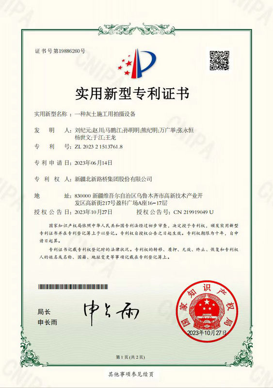 近日,從國家知識產權局獲知,由北新融建公司安徽宿固高速公路TJ04合同段項目申報的《一種灰土施工用拍攝設備》《一種裝配式涵洞拼接定位結構》兩項創(chuàng)新成果獲得實用新型專利授權,北新融建公司本年度共計取得實用新型專利授權7項。
