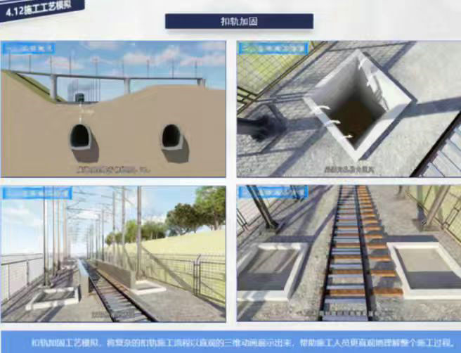 應用BIM技術為中梁山隧道下穿下行線保駕護航,中梁山隧道全長4900余米,地質(zhì)條件差,環(huán)境復雜,其中隧道下穿渭井下行線路基區(qū)間、隧道頂與渭井下行線路基的豎向距離為8.78米。為保證鐵路既有線運營安全和施工安全,項目部利用BIM技術創(chuàng)建精細的三維模型,將中梁山隧道與渭井下行線路基區(qū)間的地形、地貌、地質(zhì)條件以及周邊環(huán)境等信息進行了全面、準確的表達。通過模型,可以清晰地看到隧道與線路之間的空間關系,以及可能存在的風險點。為制定風險處理措施,優(yōu)化施工方案、加強安全監(jiān)控、采取必要的防護措施等提供了重要的參考依據(jù)。