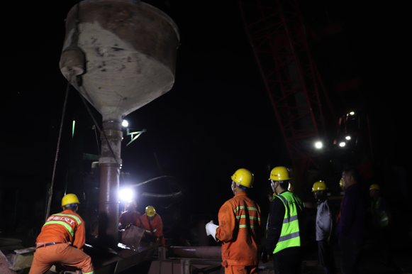 圖:余杭特大橋首根百米深樁澆筑施工現(xiàn)場(chǎng)