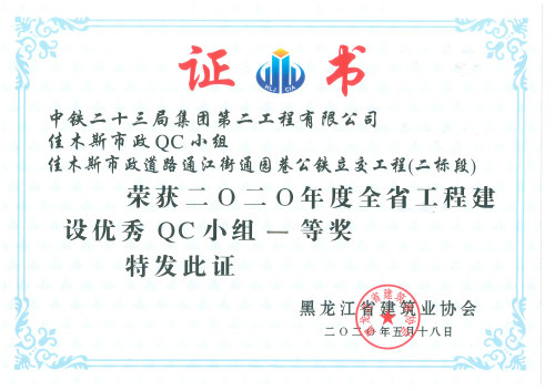 5月20日,從2020年黑龍江省工程建設(shè)優(yōu)秀QC小組活動(dòng)成果交流視頻會(huì)上傳來(lái)佳報(bào),中鐵二十三局集團(tuán)第二工程有限公司佳木斯市政QC小組的提高臨近既有鐵路富水含砂深基坑施工效率成果喜獲一等獎(jiǎng);同時(shí)鐵龍QC小組的提高特種道岔安裝質(zhì)量一次合格率成果獲二等獎(jiǎng),為哈佳項(xiàng)目部QC成果再添佳績(jī)。