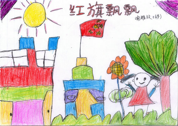 (BIM中心喻國軍的孩子喻雅玟,今年6歲,上幼兒園。她說,我家有爸爸媽媽、姐姐和我,爸爸媽媽要上班,姐姐上學(xué),我喜歡畫畫,我畫的是太陽下,紅旗飄飄,我在草地上玩)