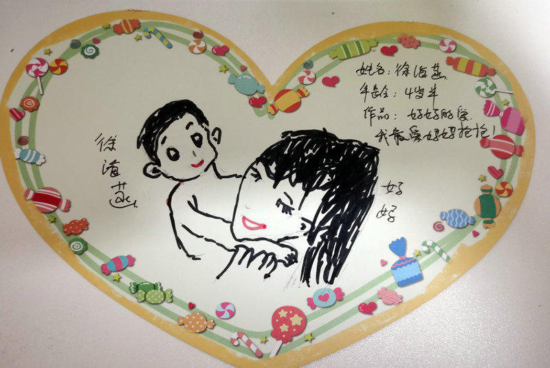 (施工二段徐華的孩子徐海菡,寶寶說最愛媽媽抱抱,媽媽說最愛寶寶,本作品由媽媽和寶寶共同完成,畫畫內(nèi)容為媽媽和寶寶的擁抱)