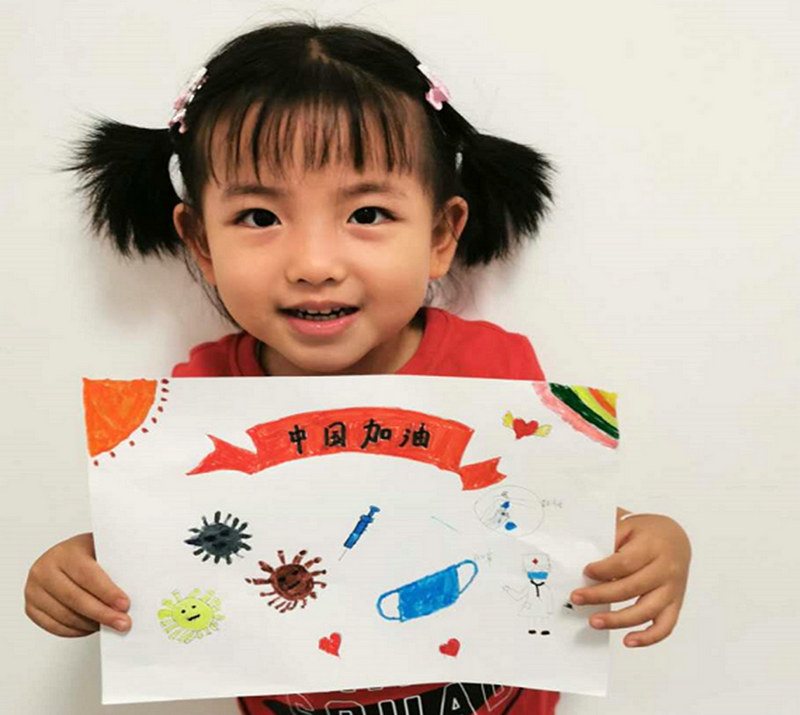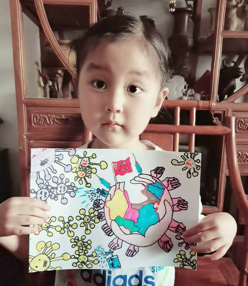 (工程管理蘇雪冬的女兒,4歲的蘇薈,用畫筆表現(xiàn)防疫抗疫)