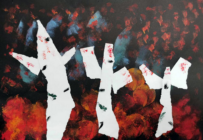 (蘇薈一幅秋天的白樺林,色彩明快,想象力極為豐富)