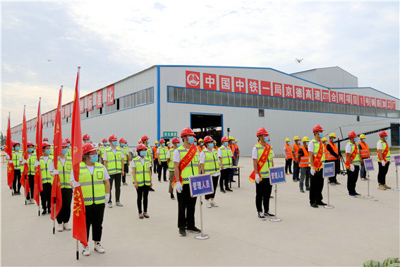 中鐵一局天津公司黨委書(shū)記、執(zhí)行董事陳高潮、黨委副書(shū)記、紀(jì)委書(shū)記、工會(huì)主席馮越、安全質(zhì)量總監(jiān)李軍、副總經(jīng)理、京德高速項(xiàng)目經(jīng)理王剛出席了推進(jìn)會(huì)。公司黨群部門(mén)人員、京德高速項(xiàng)目員工、勞務(wù)隊(duì)人員等60余人參加了現(xiàn)場(chǎng)推進(jìn)會(huì)。