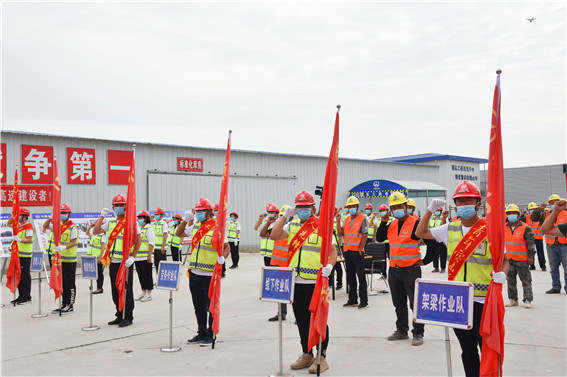 王剛在表態(tài)發(fā)言中講到,一要借著勞動(dòng)競(jìng)賽活動(dòng)的“東風(fēng)”,充分調(diào)動(dòng)全體參建員工的積極性、主動(dòng)性,以更飽滿(mǎn)的熱情,投入后續(xù)施工當(dāng)中,圓滿(mǎn)、高效完成勞動(dòng)競(jìng)賽各項(xiàng)目標(biāo),助力公司在河北市場(chǎng)再創(chuàng)佳績(jī)、再立新功,持續(xù)開(kāi)拓雄安新區(qū)乃至京津冀地區(qū)市場(chǎng)。二要抓住施工生產(chǎn)的黃金季節(jié),以安全質(zhì)量環(huán)保和文明施工為前提,以施工進(jìn)度為龍頭,以資源供給、有效協(xié)調(diào)為保證,全面調(diào)動(dòng)激發(fā)廣大職工的積極性和創(chuàng)造力,做到全面開(kāi)花,掀起項(xiàng)目建設(shè)高潮。三要統(tǒng)一思想,提高認(rèn)識(shí),確保“五亮五比五創(chuàng)”主題實(shí)踐活動(dòng)深入開(kāi)展,激發(fā)黨員干部以更加強(qiáng)烈的責(zé)任擔(dān)當(dāng),更加飽滿(mǎn)的激情、更加旺盛的干勁、更加務(wù)實(shí)的作風(fēng)在項(xiàng)目建設(shè)熱潮中當(dāng)先鋒、爭(zhēng)先鋒。