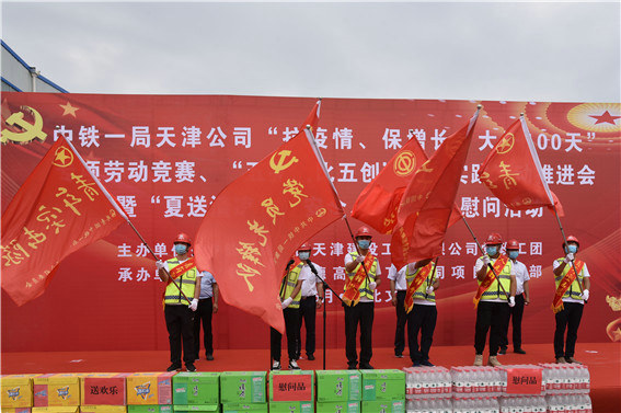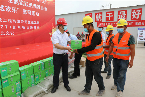 活動(dòng)期間,進(jìn)行了“夏送清涼、送安全、送歡樂(lè)”慰問(wèn)活動(dòng),現(xiàn)場(chǎng)與會(huì)領(lǐng)導(dǎo)為京德項(xiàng)目職工和一線(xiàn)勞務(wù)工發(fā)放了防暑降溫慰問(wèn)品,為大家送去了夏日的關(guān)懷和清涼。
