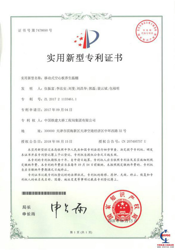 圖三、移動(dòng)式空心板養(yǎng)生溫棚專利證書