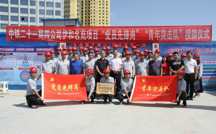 為慶祝建黨99周年,深入貫徹習(xí)近平新時(shí)代中國特色社會(huì)主義思想和黨的十九大精神,緊密結(jié)合公司“項(xiàng)目管控創(chuàng)效年”活動(dòng),充分發(fā)揮項(xiàng)目部黨員先鋒模范帶頭作用特別是青年職工生力軍作用,持續(xù)推進(jìn)項(xiàng)目創(chuàng)新發(fā)展、管理升級(jí)、提質(zhì)增效,7月1日,中鐵二十一局四公司臨夏市伊和名苑棚戶區(qū)改造A區(qū)項(xiàng)目部舉行“黨員先鋒崗”授牌、“青年突擊隊(duì)”授旗儀式,公司黨委書記、董事長朱昌岳,黨委副書記、紀(jì)委書記杜長松,特級(jí)項(xiàng)目經(jīng)理、副總經(jīng)理卜宗舉,副總經(jīng)理祁濤,臨夏道合房地產(chǎn)開發(fā)有限責(zé)任公司黨委書記、董事長馬麟出席儀式,儀式由杜長松主持。