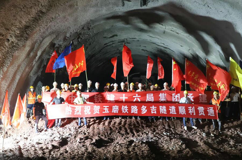 本站云南普洱8月11日訊(通訊員 許鵬健 郭琳)8月11日上午,中(國(guó))老(撾)昆(明)萬(wàn)(象)鐵路重點(diǎn)控制性工程多吉隧道貫通,這是國(guó)內(nèi)段93座隧道中貫通的第75座,也是全線貫通的第6座萬(wàn)米長(zhǎng)隧。至此,中老鐵路國(guó)內(nèi)段隧道工程已完成95%以上,為全線明年建成通車奠定了基礎(chǔ)。