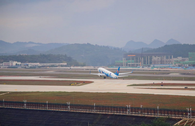 圖為貴州號(hào)(B737-800)成功降落后再次從貴陽(yáng)機(jī)場(chǎng)東跑道上起飛冉埝/攝