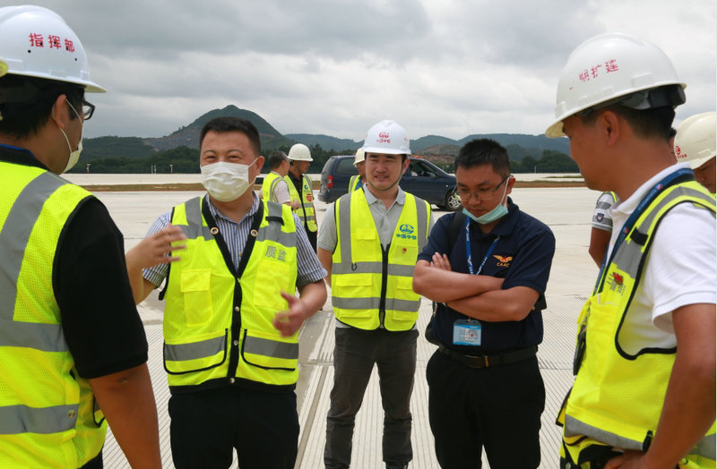 西南民航質(zhì)監(jiān)站站長(zhǎng)徐德欣等在驗(yàn)收現(xiàn)場(chǎng) 冉埝/攝
