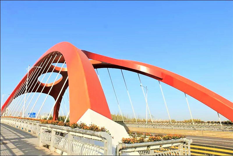 由中鐵廣州局市政環(huán)保公司承建,位于陜西西咸新區(qū)灃西新城中部浪漫新地標(biāo)豐耘橋,如一道靚麗的彩虹,飛架于風(fēng)景秀麗的中心綠廊濕地公園之上。豐耘橋是一座紅色拱橋,象征著愛情的熱烈,橋體全長(zhǎng)約399米,為提籃式系桿拱橋設(shè)計(jì),完美的流線設(shè)計(jì),寓意愛情長(zhǎng)長(zhǎng)久久、順順利利,與心愛的人攜手走到豐耘橋上,感受漫地花海的圍繞,只會(huì)想到愛情的甜蜜,會(huì)更加深愛對(duì)方,這將會(huì)是愛情中一次浪漫的經(jīng)歷,只有攜手共同走過(guò)、經(jīng)歷過(guò),愛才會(huì)越濃烈,經(jīng)歷了酸甜苦辣,真愛才會(huì)更加長(zhǎng)久