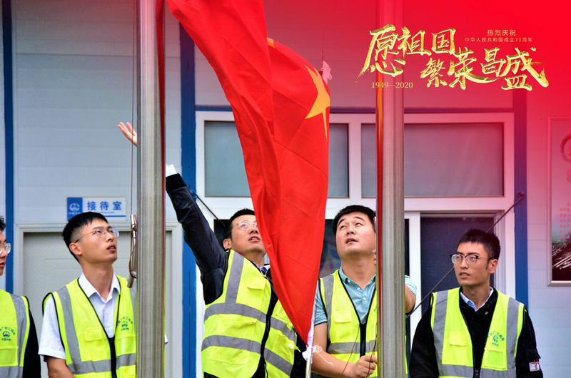 2020年10月1日,中華人民共和國成立71周年,當日上午8:00,中鐵廣州局市政環(huán)保公司西咸項目部,組織全體員工舉行2020年國慶升旗儀式。在項目部樓前員工們見證這莊嚴、隆重的升國旗時刻。五星紅旗在項目部樓前冉冉升起,祝福祖國!
