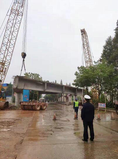 大鯨港鎮(zhèn)大橋橫跨S306省道,省道車流量大,給橋梁架設(shè)施工增加了難度。為解決這一難題,項(xiàng)目部制定了專項(xiàng)施工方案,跨省道搭設(shè)安全防護(hù)棚,并與當(dāng)?shù)亟煌ú块T積極溝通,派路政、交警部門工作人員現(xiàn)場指揮,確保架梁過程平穩(wěn)安全。