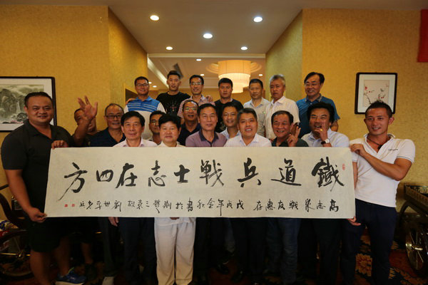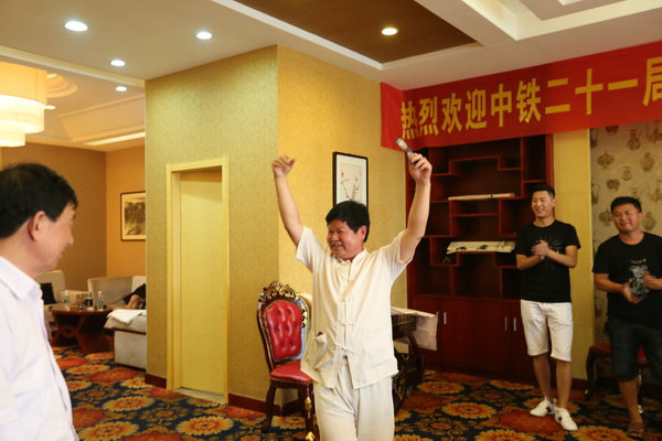 老戰(zhàn)士、公安縣文聯(lián)主席、書(shū)法家劉世平為了表達(dá)對(duì)48團(tuán)娘家人的深情厚意和感謝他們?yōu)楣踩嗣裥迾蜾伮匪鞯呢暙I(xiàn),不停地現(xiàn)場(chǎng)揮毫潑墨,為大家贈(zèng)送蒼勁有力、功力深厚、具有收藏價(jià)值的字畫(huà)。老戰(zhàn)士賀正海退伍后,成為公安縣一名實(shí)力雄厚的知名企業(yè)家,賀總在祝酒致辭中道出了肺腑之言:“感謝老部隊(duì)、老單位為公安人民建成了高質(zhì)量、高標(biāo)準(zhǔn)的橋梁,極大地改善了全縣的交通狀況,方便了群眾出行。”他說(shuō),中鐵二十一局三公司公安四橋項(xiàng)目部在公安縣架起了五座橋梁,其中一座是公安籍鐵道兵48團(tuán)老戰(zhàn)友與中鐵二十一局三公司之間聯(lián)系的橋梁。