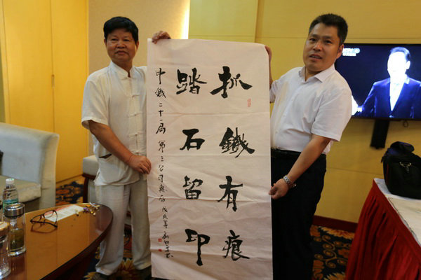 公安縣文聯(lián)主席、書(shū)法家劉世平為公司贈(zèng)送書(shū)畫(huà)。