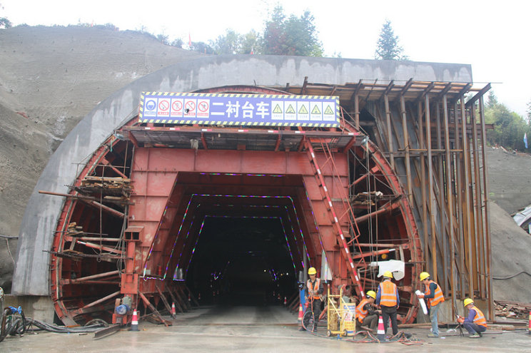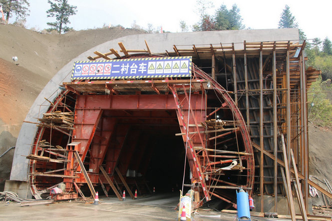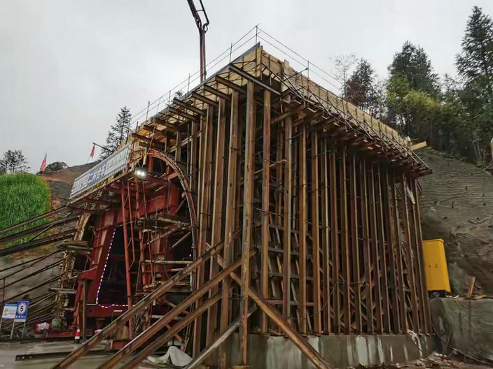 正在進(jìn)行混凝土澆筑的沱川隧道右洞“棚洞式”洞門