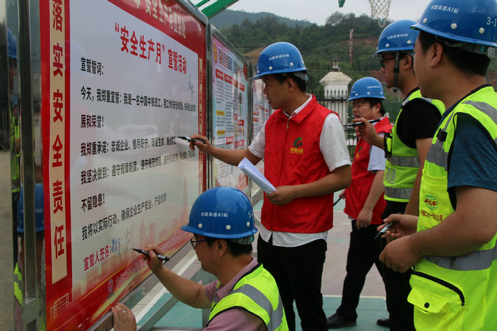 今年是20個安全生產(chǎn)月,也是祁婺高速施工的關(guān)鍵之年,安全生產(chǎn)關(guān)系著每一個員工的家庭幸福,必須常抓不懈。參加“安全生產(chǎn)月”啟動儀式的同志,面對誓言墻舉手宣誓:安全生產(chǎn)是我的崇高職責,為了項目建設(shè),為了自己和他人生命安全,作為一名負責任的企業(yè)員工,我保證自覺做到不違章作業(yè),不違反勞動紀律,嚴格履行安全職責……。宣誓后,員工們分別鄭重在“安全生產(chǎn)月”誓言墻上簽下自己的名字。
