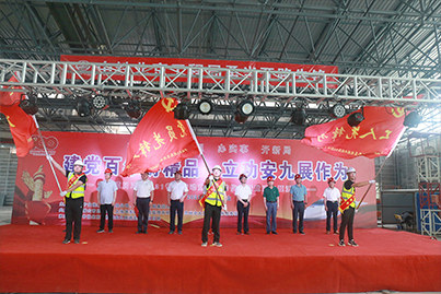 儀式開始前,項(xiàng)目部進(jìn)行了安全生產(chǎn)月宣誓活動(dòng),并在宣誓展板上簽字,將安全生產(chǎn)工作落到實(shí)處,提高全員安全生產(chǎn)意識(shí)。儀式在潛山站施工現(xiàn)場(chǎng)舉行,安九鐵路安徽段相關(guān)建設(shè)單位,潛山市,宿松縣、太湖縣高鐵指揮部辦公室,潛山市總工會(huì)等單位相關(guān)負(fù)責(zé)人參加儀式。儀式現(xiàn)場(chǎng),宣讀了安九項(xiàng)目“大干90天,沖刺8.31”勞動(dòng)競(jìng)賽方案,并為項(xiàng)目部青年突擊隊(duì)、工人先鋒號(hào)、黨員先鋒工程授旗。與會(huì)領(lǐng)導(dǎo)為項(xiàng)目員工、協(xié)作隊(duì)伍發(fā)放飲料、夏涼被等慰問品并實(shí)地參觀了潛山站站房項(xiàng)目建設(shè)情況。