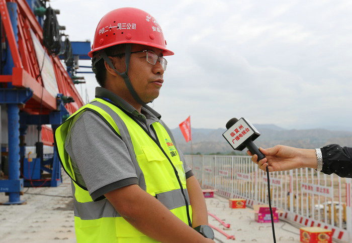 圖為項(xiàng)目經(jīng)理許道連接受臨夏州電視臺(tái)記者采訪