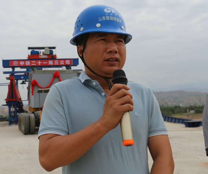 駐地辦總監(jiān)喬利祥在架梁儀式上講話