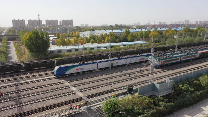 圖為兩萬噸重載列車在肅寧北站場等待發(fā)車
