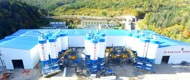 新建沈陽至白河高速鐵路吉林段TJ-6標(biāo)1#混凝土拌和站位于吉林省白山市江源區(qū)灣溝鎮(zhèn),緊鄰G201國道,占地面積33畝,由混凝土生產(chǎn)區(qū)、辦公區(qū)及生活區(qū)組成。拌和站配備了HZS180攪拌機(jī)3臺、粉罐24個、料倉22個、裝載機(jī)3臺,混凝土運輸車20臺,環(huán)保降塵霧炮機(jī)4臺、500KW發(fā)電機(jī)、200噸地磅、洗石機(jī)、砂石分離機(jī)各一臺及相關(guān)試驗檢測儀器等設(shè)備設(shè)施。其中,料倉及配料機(jī)采用型鋼支架保溫棚全封閉設(shè)置,辦公房屋采用彩鋼瓦活動板房。拌和站設(shè)備先進(jìn)、生產(chǎn)能力強(qiáng)、拌和效率高、質(zhì)量穩(wěn)定,可滿足管段施工的混凝土生產(chǎn)和供應(yīng),是該標(biāo)段最大的一座混凝土拌和站。
