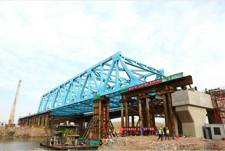 12月28日上午,經(jīng)過24個小時的托拉、檢驗、糾偏、落梁等工序,長95米,重1450噸的鋼桁梁穩(wěn)穩(wěn)落在橋墩上,京滬高速公路改擴建項目跨鹽河95米鋼桁梁采用浮托法架設順利完成,標志著由中鐵一局三公司承建的京滬高速公路改擴建項目施工進入新的階段。據(jù)悉,采用浮托法對鋼桁梁進行架設工藝為中鐵一局首次應用。