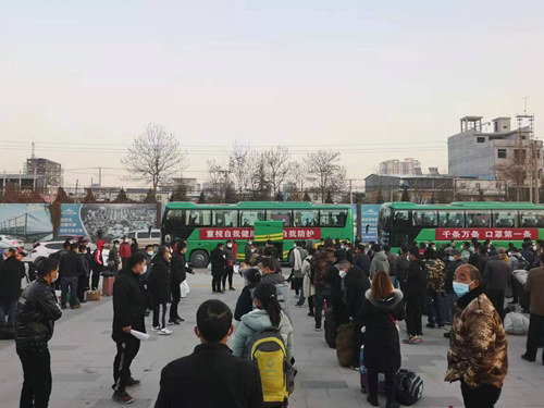 當(dāng)天,縣政府安排“農(nóng)民工返鄉(xiāng)專車”10輛,對(duì)車輛進(jìn)行全面消殺,項(xiàng)目管理人員提前組織農(nóng)民工進(jìn)行核酸檢測(cè)并開具返鄉(xiāng)證明。在三原恒大康養(yǎng)城項(xiàng)目展示中心集結(jié)點(diǎn),項(xiàng)目總工何玅臻帶領(lǐng)項(xiàng)目管理人員維持秩序,清點(diǎn)人數(shù),交代注意事項(xiàng),聯(lián)合縣政府免費(fèi)運(yùn)送符合條件的農(nóng)民工平安返鄉(xiāng)。
