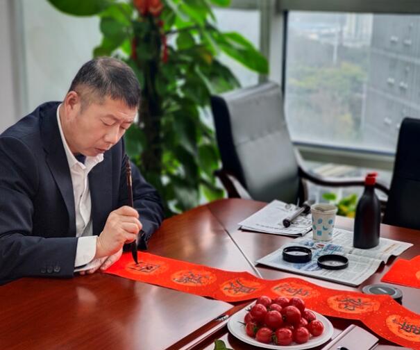 1月16日下午,天晟公司副書記杜曉飽蘸濃情、揮毫潑墨,現(xiàn)場寫對聯(lián)、送祝福,一副意蘊豐富的春聯(lián),伴隨著濃濃的墨香,讓大家感受到了濃濃的年味。大家手捧祝福,合影留念,共同祝愿2022年北新集團發(fā)展越來越好!