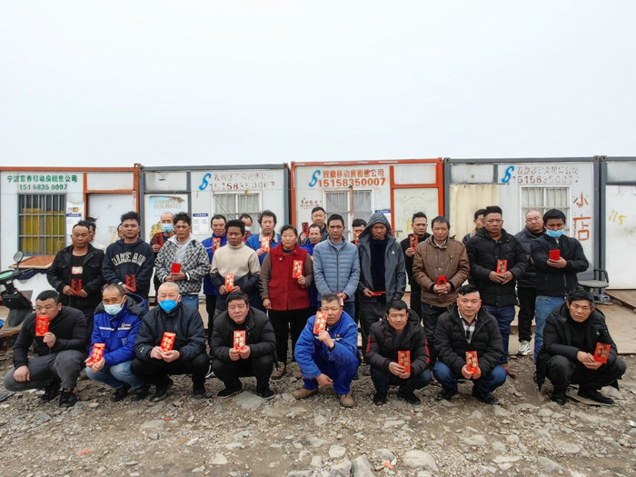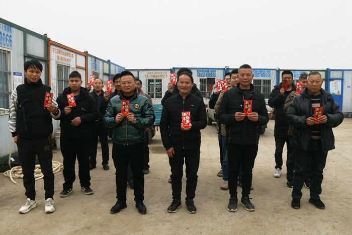 與此同時(shí),項(xiàng)目部給員工發(fā)放水果、紅包,送去新春的祝福和關(guān)愛(ài)。項(xiàng)目部、施工隊(duì)包餃子、烹飪美味佳肴,將色香味俱全的菜品擺滿餐桌,員工們吃著香噴噴的的飯菜,喝著罪人的美酒,心里樂(lè)開(kāi)了花,一張張笑臉,一句句互道祝福的話,給飲食文化注入了新的元素,置身于這情、這景,哪個(gè)員工不激動(dòng)?圍坐在餐桌上來(lái)自五湖四海的員工人,真像一個(gè)團(tuán)結(jié)友愛(ài)、和諧幸福的大家庭。