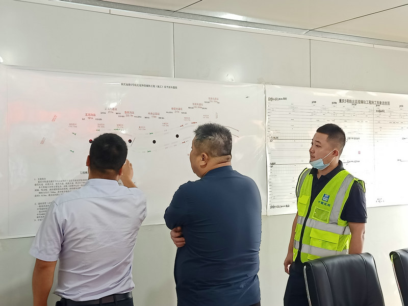 2022年5月28日上午,中鐵三局集團線橋工程有限公司副總經(jīng)理李建軍蒞臨重慶地鐵5號線北延伸段,對鋪軌現(xiàn)場、機械設(shè)備、調(diào)度室、內(nèi)業(yè)、領(lǐng)導帶班盯崗、機械設(shè)備日常檢查監(jiān)督、班前班后總結(jié)等進行詳細檢查,并做出重要指導;重慶地鐵5號線項目領(lǐng)導韓云鶴、李正學、分管運輸副經(jīng)理陳琪陪同檢查。