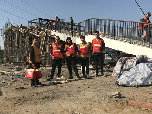 9月20日上午9時(shí),齊富項(xiàng)目部副總工程師孟曉東帶領(lǐng)項(xiàng)目部綜合辦公室人員來到K1+289.7鐵路道口人行天橋施工現(xiàn)場,將中秋月餅送到了施工一線員工手中,為施工現(xiàn)場員工送上了禮品及祝福,感謝他們在雙節(jié)期間堅(jiān)守在人行天橋施工現(xiàn)場,為人行天橋建設(shè)的建設(shè)付出的辛勤努力,希望借此次雙節(jié)慰問活動(dòng)可以讓節(jié)日期間離家在外、堅(jiān)守在工作崗位上的員工們度過一個(gè)愉快的節(jié)日。