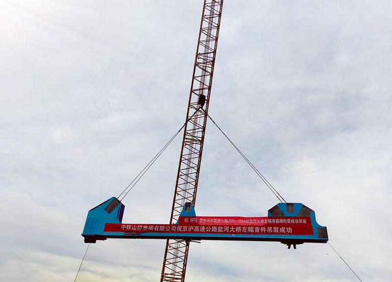 2022年8月9日,中鐵一局承建的京滬高速公路HA4標(biāo)鹽河大橋左幅首榀鋼桁梁成功吊裝。