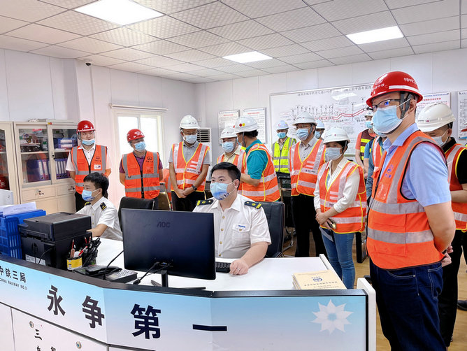 2022年10月16日,深圳市發(fā)展和改革委員會(huì)副主任鄭鐵軍蒞臨深圳地鐵13號線后?;卣{(diào)度中心檢查指導(dǎo)工作,港鐵中鐵電化軌道交通(深圳)有限公司總經(jīng)理孟榮輝、副總經(jīng)理吳啟中、安全總監(jiān)蔡偉森,中鐵三局集團(tuán)線橋有限公司工會(huì)主席邸向軍,項(xiàng)目經(jīng)理劉志權(quán)、項(xiàng)目運(yùn)輸副經(jīng)理?xiàng)铊吹认嚓P(guān)負(fù)責(zé)人陪同檢查。