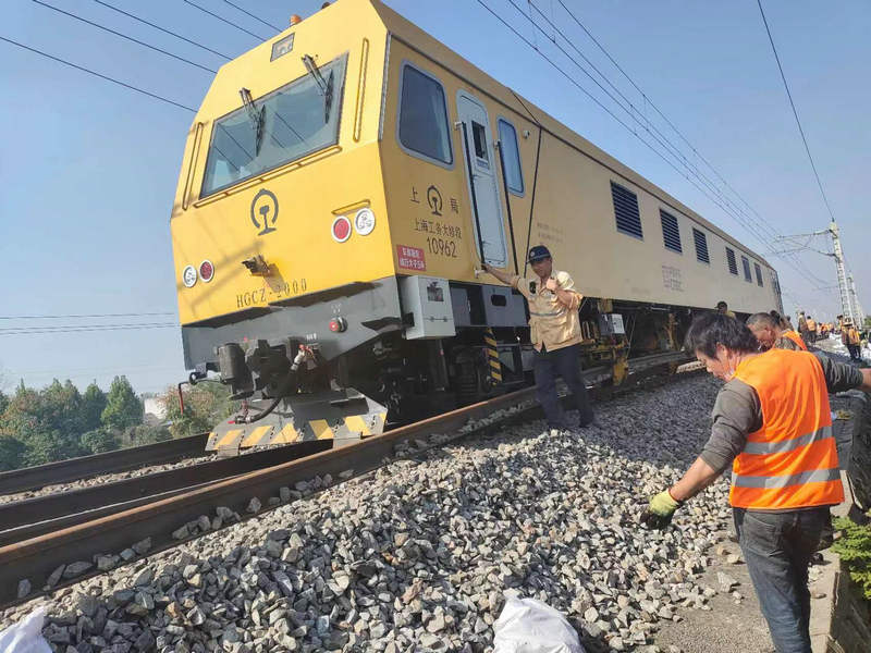 “師傅,這里連續(xù)有幾塊膠墊偏斜,請一會整好。在那邊有兩個螺絲扭力矩不到位,我在枕木面做了標記等會兒去復擰一下……”10月21日,在京九下行線K790+520公里處,中國鐵路上海局集團有限公司阜陽工務段亳州線路車間王寨示范隊職工胡天賜監(jiān)控大列換軌質(zhì)量,發(fā)現(xiàn)連續(xù)幾塊膠墊歪斜及扣件扭力矩等問題,立即通知施工人員進行整改。