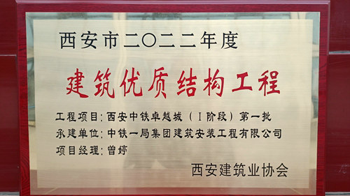 (西安訊)2023年2月,從西安市建筑業(yè)協(xié)會公布了2022年度(下半年)西安市建筑優(yōu)質結構工程認定結果,由中鐵一局建安公司承建的西安中鐵卓越城項目榮獲“西安市建筑優(yōu)質結果工程”獎。