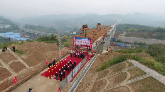 近日,中鐵建大橋工程局五公司施工的陽(yáng)大鐵路項(xiàng)目部舉行了架梁貫通儀式,慶祝陽(yáng)泉北至陽(yáng)泉東432片T梁架設(shè)任務(wù)圓滿(mǎn)完成,這一任務(wù)的完成,標(biāo)志著陽(yáng)大鐵路全面鋪軌工程正式拉開(kāi)了施工序幕。