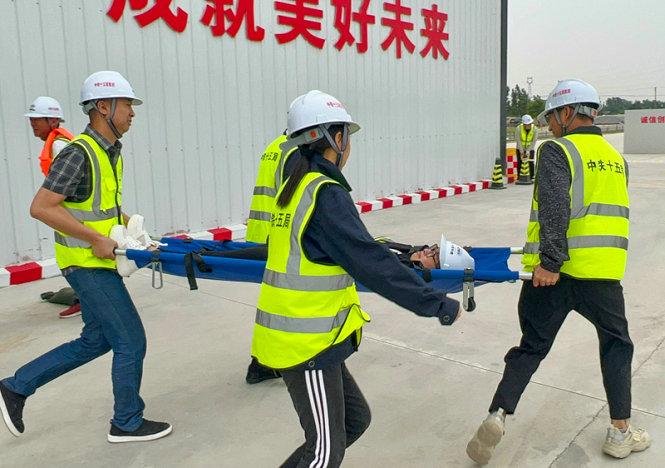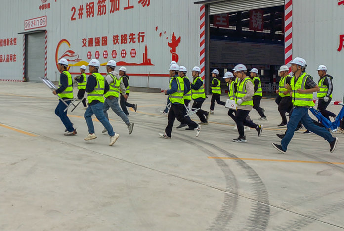 此次演練模擬河北省滄州市海興縣突遭暴雨襲擊,項(xiàng)目2號(hào)鋼筋加工場(chǎng)水位急速上漲,重要物資設(shè)備和作業(yè)人員遭遇險(xiǎn)情,急需轉(zhuǎn)移。分部安全管理部部長(zhǎng)、防洪搶險(xiǎn)監(jiān)測(cè)預(yù)警組組長(zhǎng)張海嬌發(fā)現(xiàn)汛情后,立即向分部負(fù)責(zé)人、應(yīng)急救援總指揮宋延濤報(bào)告??傊笓]隨即下達(dá)命令,立即啟動(dòng)防汛搶險(xiǎn)應(yīng)急預(yù)案。監(jiān)測(cè)預(yù)警組、應(yīng)急搶險(xiǎn)組、醫(yī)療救護(hù)組、物資后勤組、通訊聯(lián)絡(luò)組、保衛(wèi)疏散組等6個(gè)小組的應(yīng)急搶險(xiǎn)人員迅速趕赴現(xiàn)場(chǎng),展開搶險(xiǎn)救援。裝填、運(yùn)輸沙袋筑防水壩,接水管、安裝水泵抽排水,對(duì)受傷人員進(jìn)行急救并轉(zhuǎn)移至安全地帶或醫(yī)院,對(duì)危險(xiǎn)區(qū)進(jìn)行警戒,維持交通秩序等應(yīng)急處置工作緊張有序進(jìn)行……現(xiàn)場(chǎng)情景模擬真實(shí),應(yīng)急搶險(xiǎn)救援緊張有序,活動(dòng)取得圓滿成功。